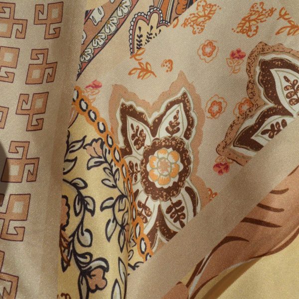 Geleneksel motiflerin en nazik yorumu… Pudra Miras eşarp, gücü temsil eden koçbaşı figürünü yumuşak renk geçişleriyle yeniden tanımlıyor. BBD Boutique’nin özgün tasarım diliyle kurgulanan floral desenler, stilinize sofistike bir derinlik kazandırırken; taba tonları tasarıma karakter katıyor. Detaylarda saklı olan kültürel zenginliği modern bir şıklıkla keşfetmek isteyenler için sınırlı sayıda üretildi. Stilinize sanatsal ve köklü bir imza atın.