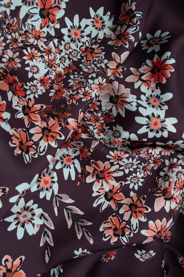 Dikkatlice seçilmiş pastel tonlarındaki çiçekler, derin ve karanlık bir zemin üzerinde tıpkı yıldızlar gibi ışıldayarak göz alıcı bir kontrast yaratır. Karmaşık çiçek düzeni, hareket ve dinginliğin mükemmel uyumunu sağlar. Bu eşarp, hayatın kaotik güzelliklerini ve her anında saklı olan huzuru keşfetmek isteyenler için tasarlandı.